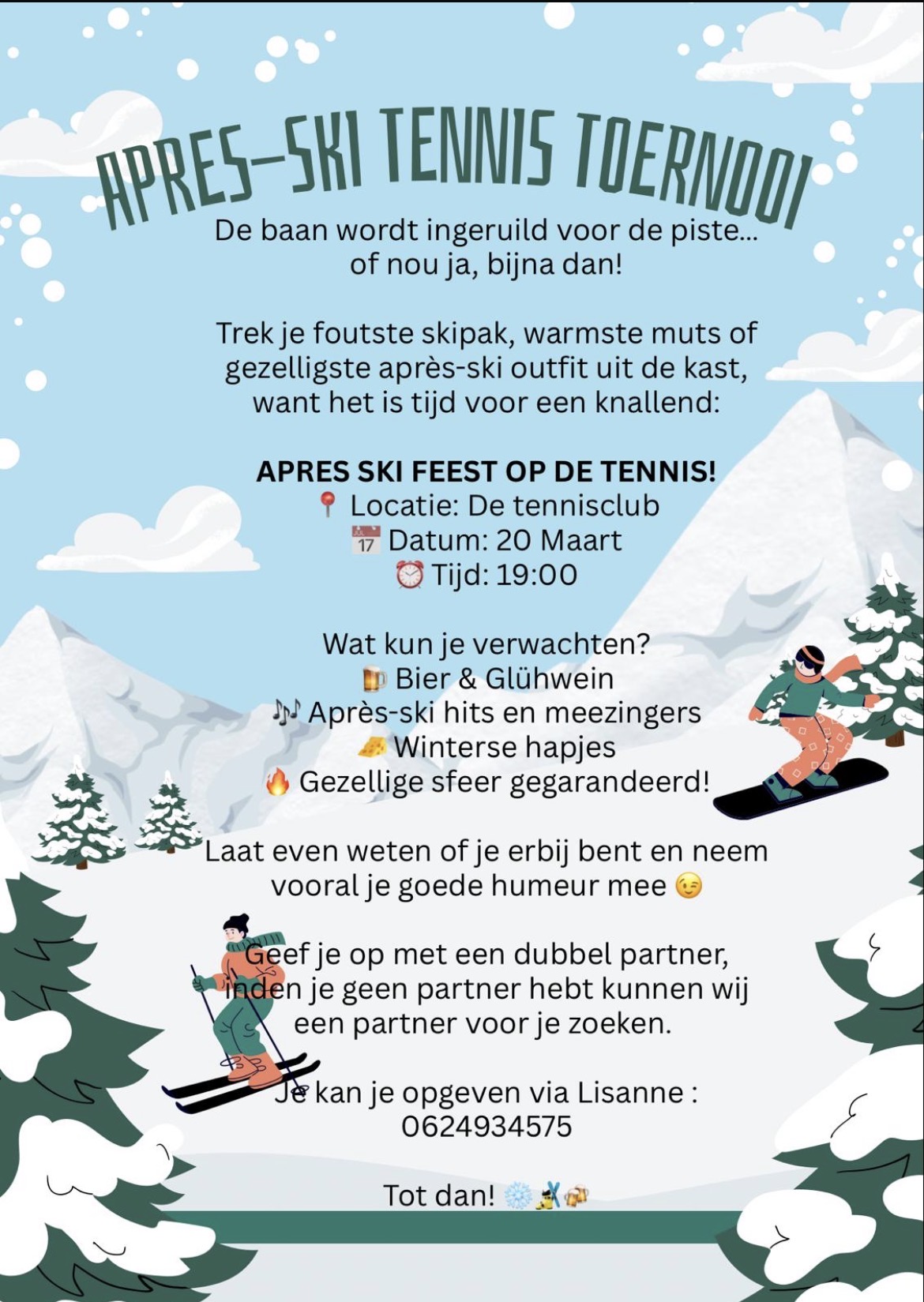 Een avond met tennis, gezelligheid en een heus après ski feest. De poster vertelt eigenlijk alles al!